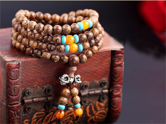 (FREE) Natural African Wenge 108-Beads Buddhist Prayer Bead Bracelet