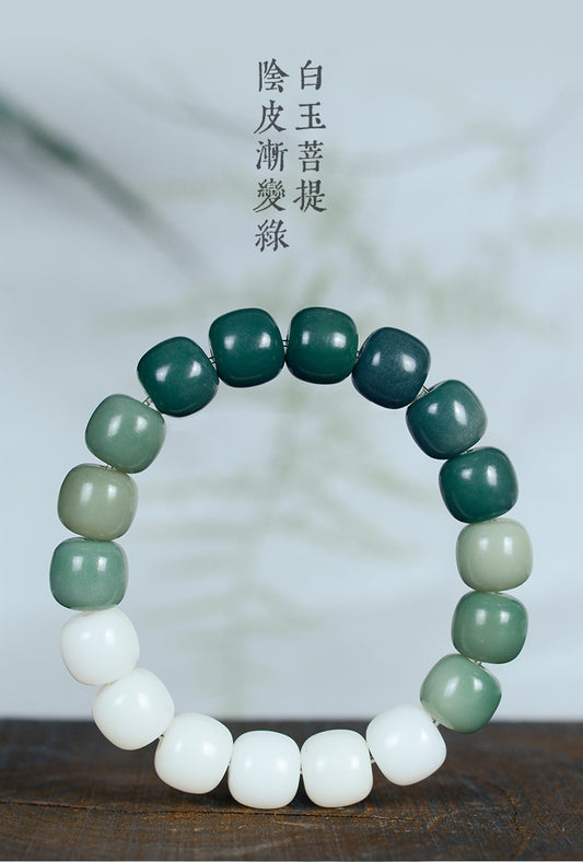 (FREE) Ombre Green and White Bodhi Root Bead Bracelet