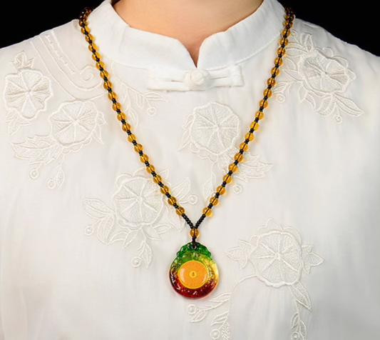(FREE) The Multicolored Glass Vajra Samadhi Mantra Necklace Pendant